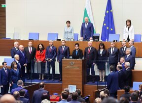 Президентът Румен Радев разкритикува сглобката ПП-ДБ, ГЕРБ-СДС и ДПС на влизане в парламента днес преди да се закълне служебният кабинет с министри, посочени от премиера Димитър Главчев.