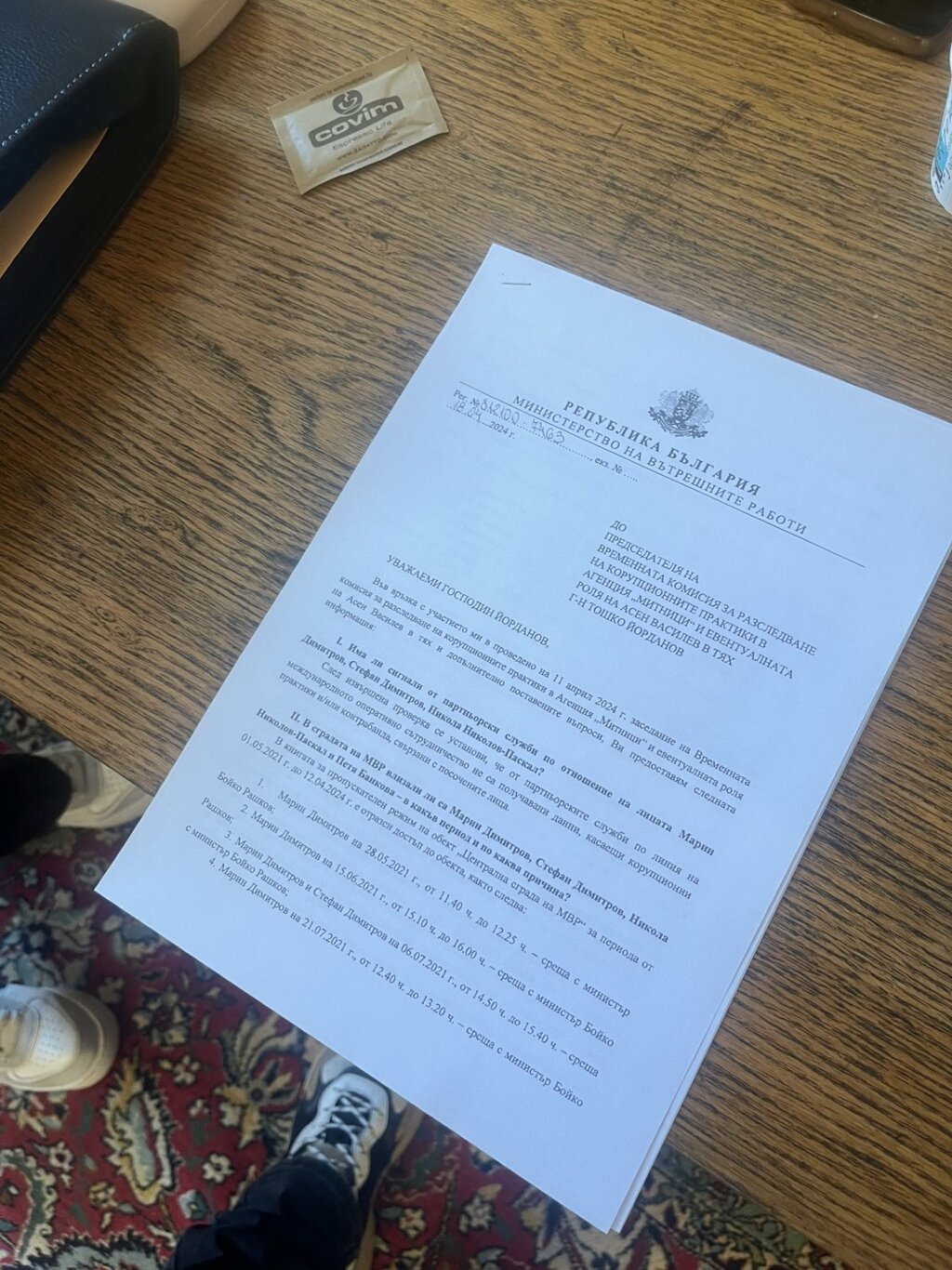 Марин и Стефан Димитрови са посещавали сградата на МВР, докато министър е бил Бойко Рашков. Шефката на Агенция "Митници" Петя Банкова е посещавала сградата през 2023 г.