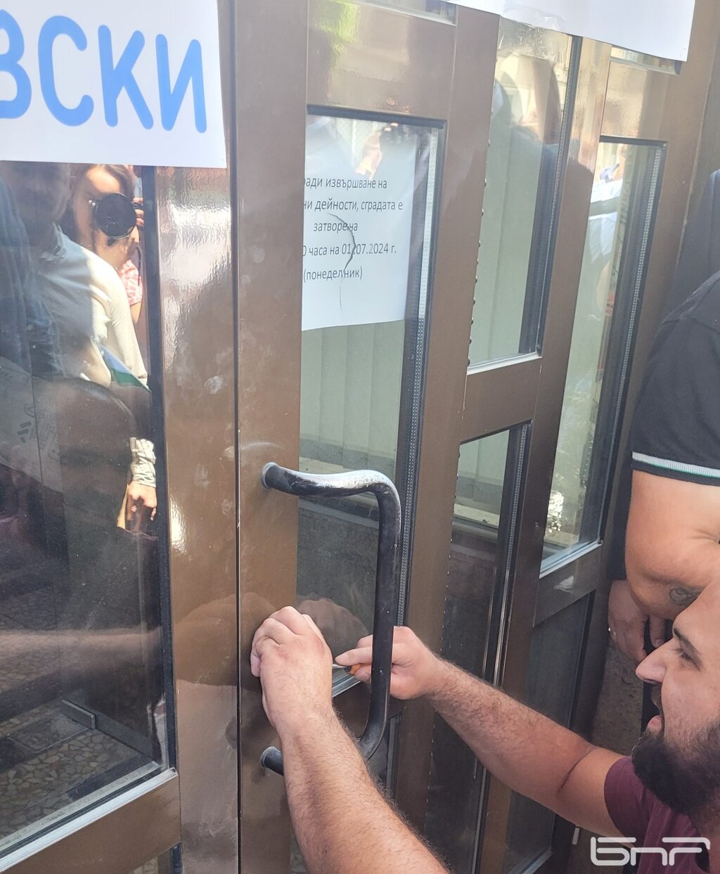 Пред сградата се чуват призиви за насилствено отваряне на вратите. Чака се адвокат, за да решат активистите какво ще правят.