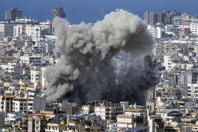 Дим се издига след израелски въздушен удар в южен Бейрут, 23 ноември 2024 г.