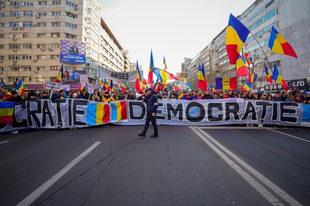 Десетки хиляди симпатизанти на опозиционния Алианс за обединение на румънците (АУР) се включиха в протест в центъра на Букурещ днес срещу анулирането на президентските избори през 2024 г., съобщават Аджерпрес, цитирана от БТА.