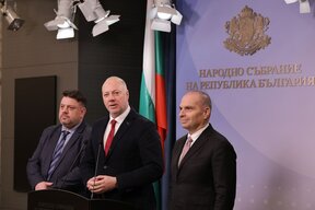 Заедно с Желязков в изявлението пред медиите участваха и вицепремиерите Атанас Зафиров от БСП-ОЛ и Гроздан Караджов от ИТН.