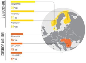 С 43 от 100 точки България се нарежда на 76-о място сред 180 страни.