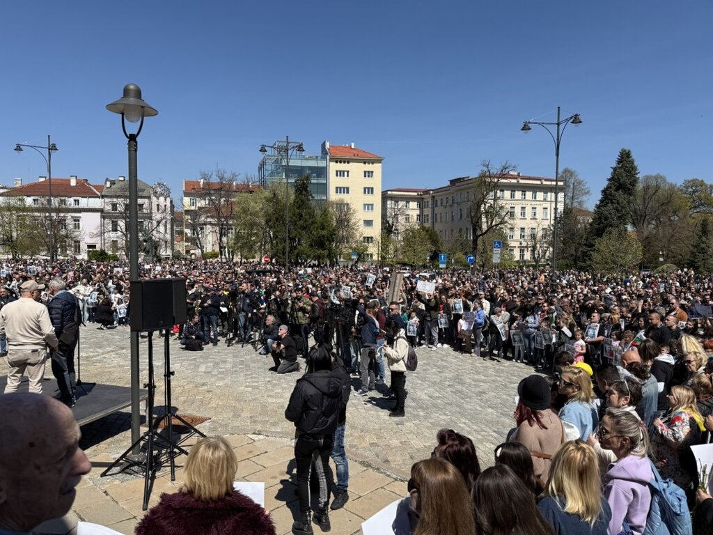 Десетки хора се събраха по обед пред храм-паметника "Свети Александър Невски". Има специално построена сцена и отстрани на единия от входовете на храма откъм улица "Московска". От тонколоните прозвуча песен, написана в памет на 12-годишното момиче Сияна.