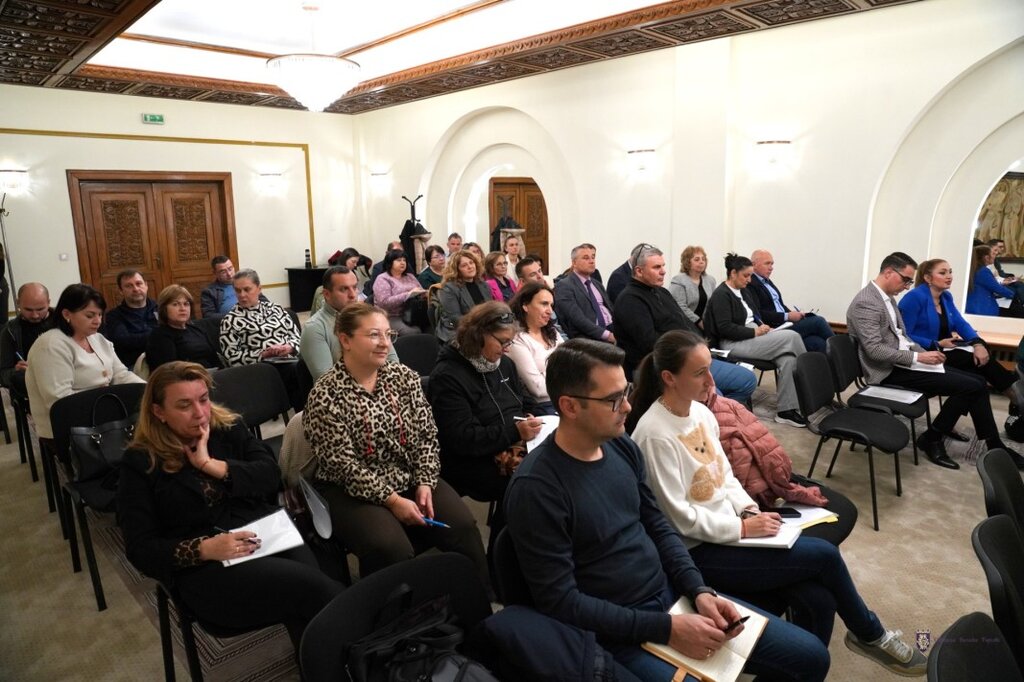 Заместник-министърът на регионалното развитие и благоустройството Дора Янкова (вляво) и кметът на Велико Търново Даниел Панов по време на срещата