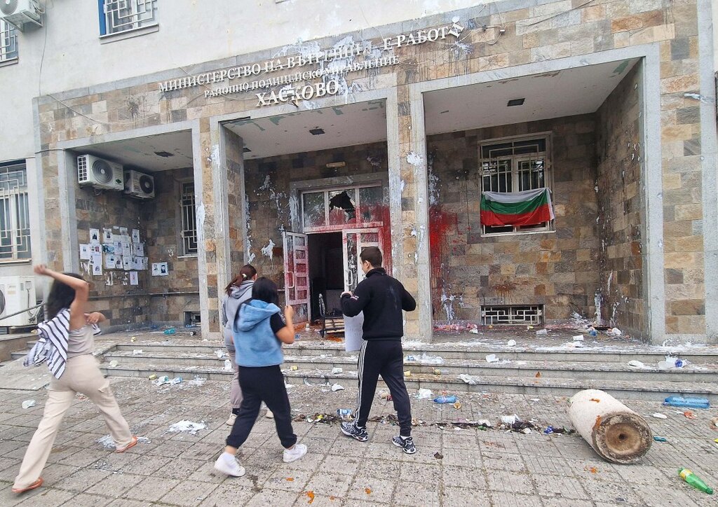 Последва агресия от предимно млади хора, част от тях непълнолетни, които замеряха сградата на полицейското управление с камъни и счупиха част от прозорците. Младежи свалиха една част от улуците на сградата и ги стовариха пред входа на РПУ-то. Има разхвърляни кошове за отпадъци и част от сградата е обляна с червена боя. Протестът продължава. До момента полицията не е реагирала.
