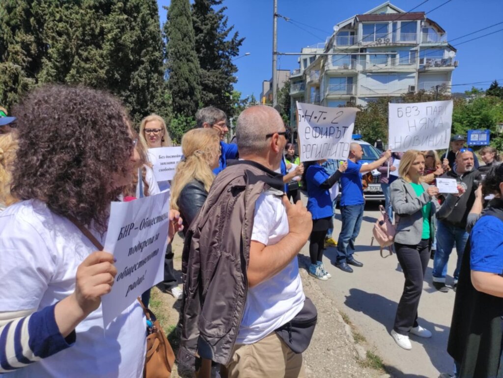 Журналисти от БНР-Радио Варна, ръководството на радиостанцията, кореспондентите на БТА и БНР, както и журналисти от Регионалния телевизионен център и БТА в морската столица, излязоха на протест с искане за достойно заплащане за достоен труд и скандираха, че без справедливо заплащане няма свободна журналистика.