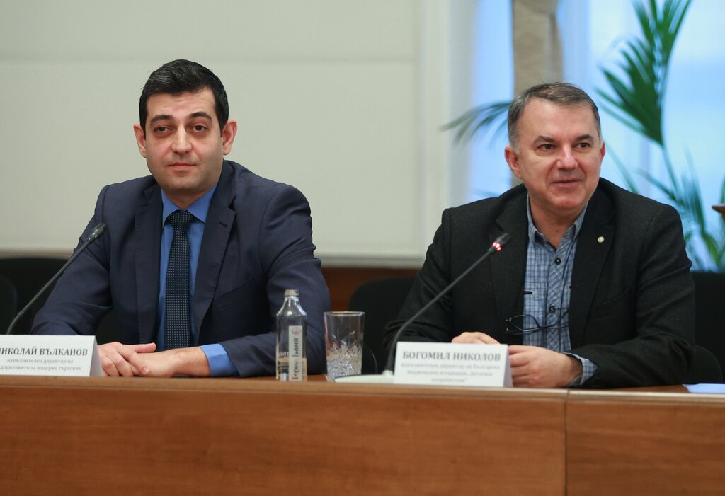 Изпълнителният директор на Сдружението за модерна търговия Николай Вълканов и изпълнителният директор на Българската национална асоциация "Активни потребители" Богомил Николов