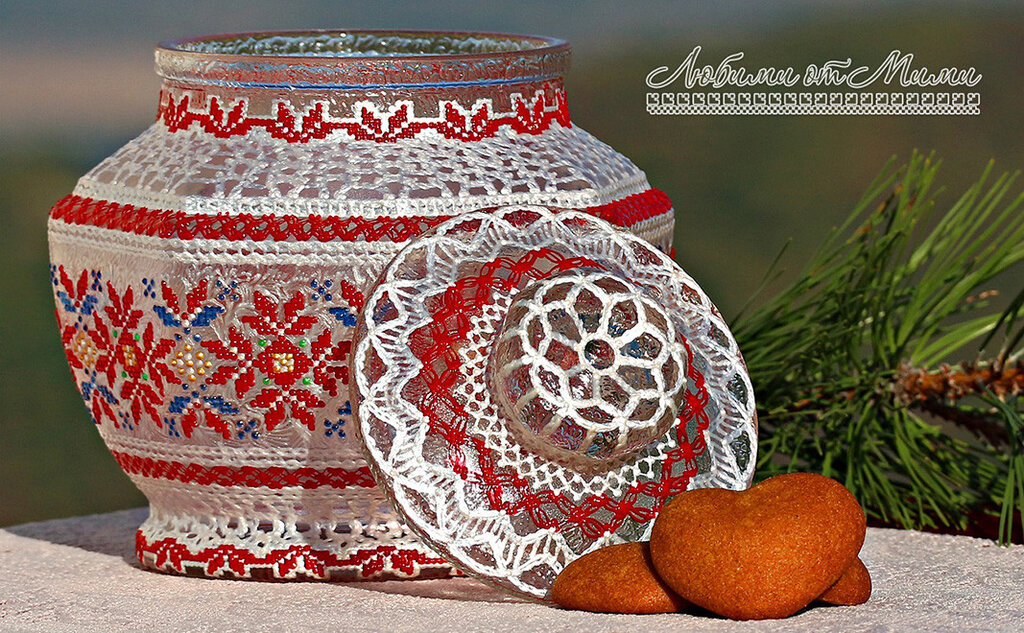 Одавно је бугарски традиционални вез инспирација. Разноликост његових елемената је израз богате душе и уметничког талента Бугарке и оличење сталне тежње за лепотом. Већ пет година Марија Гергова улаже таленат и позитивну енергију покушавајући да традиционални вез пренесе у наш савремени живот тако што везом украшава стаклене посуде. И успева у томе – на радост многих створила је заиста јединствене предмете од стакла.