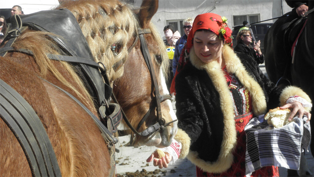 На празник, још пре изласка сунца, цуре и невесте спремају обредне хлебове, често у облику коња или потковице. На њих одозго стављају со, чешњаке белог лука, орахе. Док их деле рођацима и комшијама жене рже, шутирају се ногама или скачу изигравајући коња. Веровало се да ове радње помажу да се коњи размножавају и да младе удате жене рађају више деце.